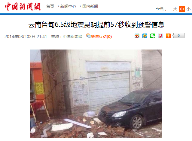 詳情見(jiàn)新聞:云南魯?shù)?/span>6.5級(jí)地震昆明提前57秒收到預(yù)警信息
