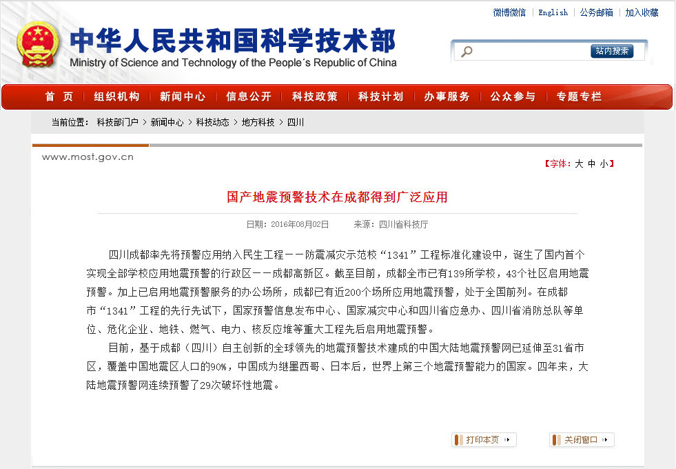 【政府支持】國產(chǎn)地震預警技術在成都得到廣泛應用