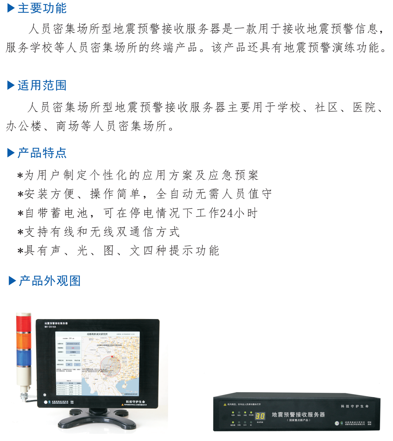 • 人員密集場(chǎng)所型地震預(yù)警接收服務(wù)器 /