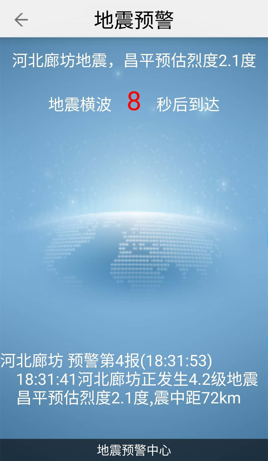 手機(jī)地震預(yù)警軟件北京用戶收到地震預(yù)警警報(bào)