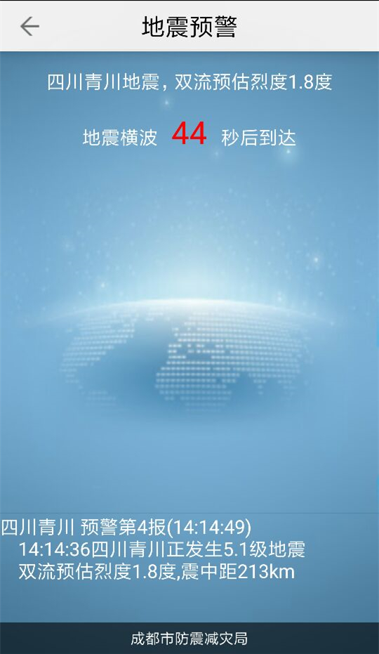 新聞來源:人民網(wǎng) 四川青川5.4級(jí)地震:地震預(yù)警系統(tǒng)提前56秒向成都預(yù)警