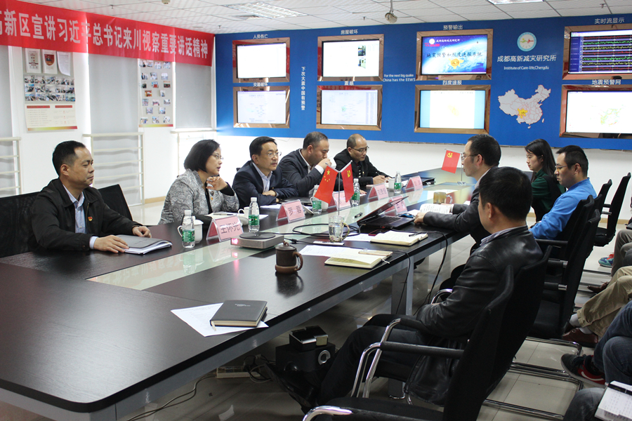 宣講會(huì)前,宣講分隊(duì)成員參觀了成都高新減災(zāi)研究所。