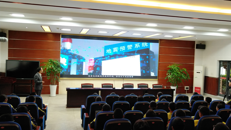 王暾博士首先為同學們講解地震預警的原理知識,新城學校多年將地震預警科普和演習作為常態(tài)工作,同學們已經(jīng)能夠充分理解并能講解地震預警的原理。