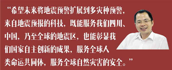 2008年,“5?12”汶川特大地震發(fā)生,王暾滿懷家國(guó)情懷,毅然回國(guó)組建成都高新減災(zāi)研究所,帶領(lǐng)團(tuán)隊(duì)致力于地震預(yù)警技術(shù)研發(fā)、成果轉(zhuǎn)化及推廣應(yīng)用。回國(guó)投身地震預(yù)警事業(yè),王暾說(shuō):“國(guó)家有難匹夫有責(zé)。汶川地震導(dǎo)致了我們國(guó)家重大人員死傷,作為一個(gè)科技工作者,一個(gè)有相關(guān)知識(shí)背景的學(xué)子,當(dāng)時(shí)就決定回國(guó)從事地震預(yù)警的科技創(chuàng)新工作,一直堅(jiān)持了十年。”
