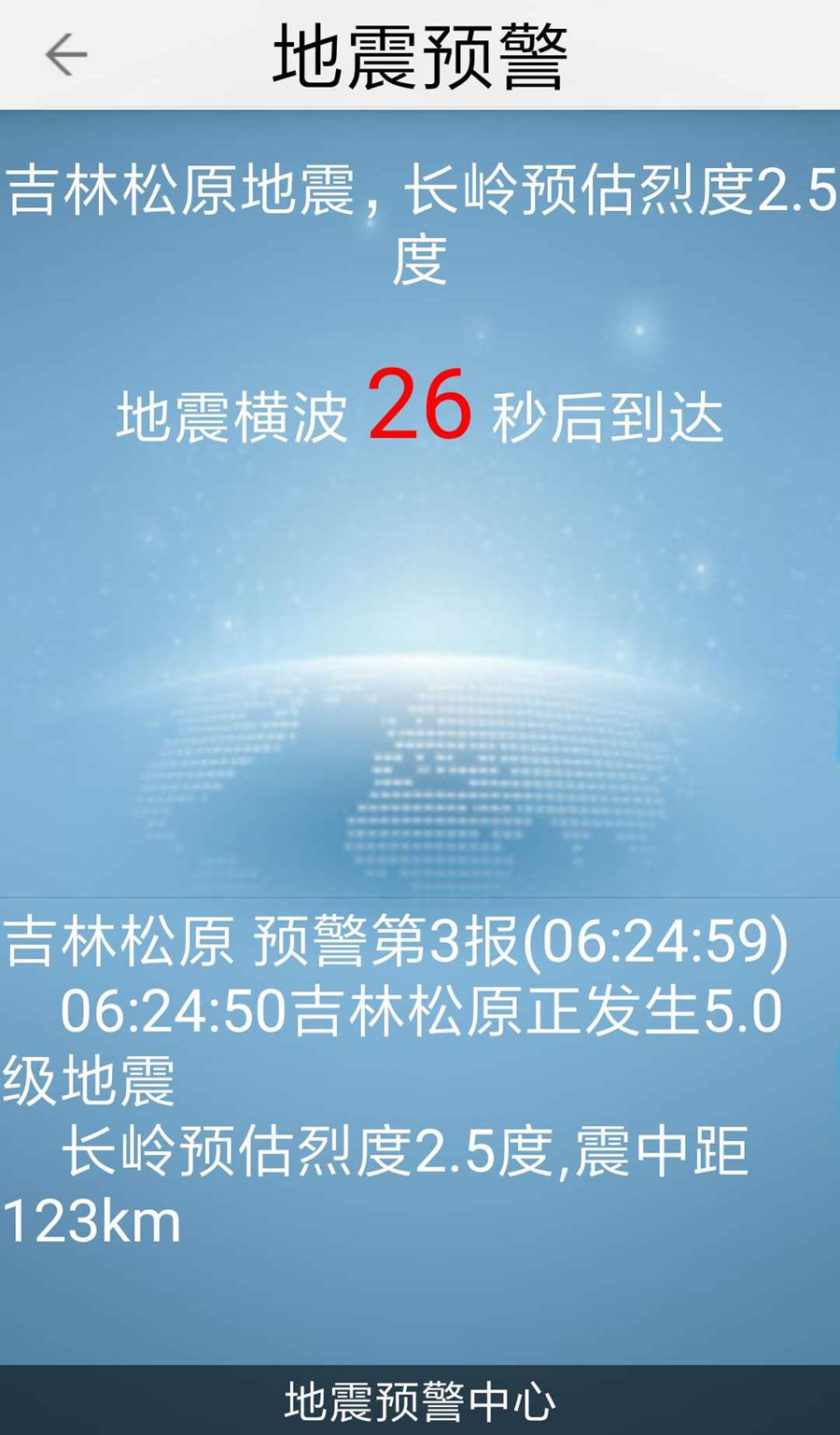 地震發(fā)生前,松原市長嶺縣長嶺鎮(zhèn)王先生正在晨練,突然他的手機開始播報倒計時,“28,27,26……”,聽到倒計時的王先生意識到這是地震預警,連忙跑到空曠的地方,做好避險準備。