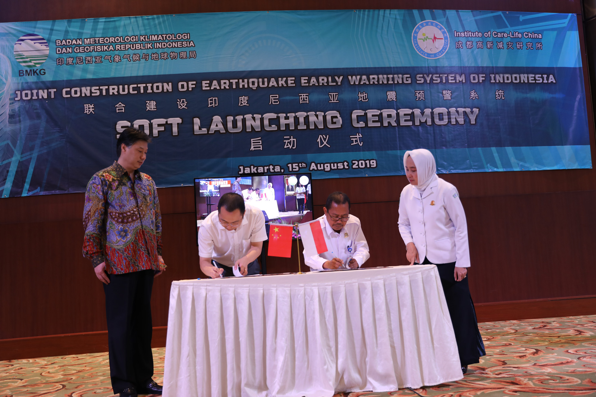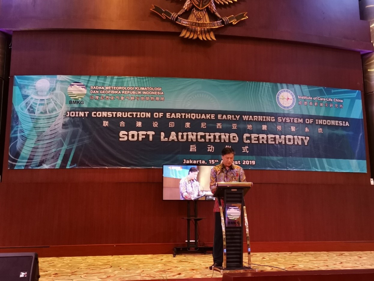印尼氣象氣候和地球物理局作為印尼國家地震主管部門,基于印尼地震預(yù)警系統(tǒng)建設(shè)的需要,對成都高新減災(zāi)研究所研發(fā)的地震預(yù)警技術(shù)的可靠性、建設(shè)和應(yīng)用模式、實際應(yīng)用效果等進行了6年追蹤,并給予了高度的評價。經(jīng)過與成都高新減災(zāi)研究所的多次洽談磋商,印尼氣象氣候和地球物理局決定采用中國“四川智造”的地震預(yù)警技術(shù)成果建設(shè)印尼地震預(yù)警網(wǎng),更好地服務(wù)印尼的地震安全。2019年1月,印尼氣象氣候和地球物理局與減災(zāi)所簽署意向合作協(xié)議,7月簽署正式合作協(xié)議,采用減災(zāi)所的全套技術(shù)系統(tǒng)建設(shè)印尼地震預(yù)警網(wǎng)。