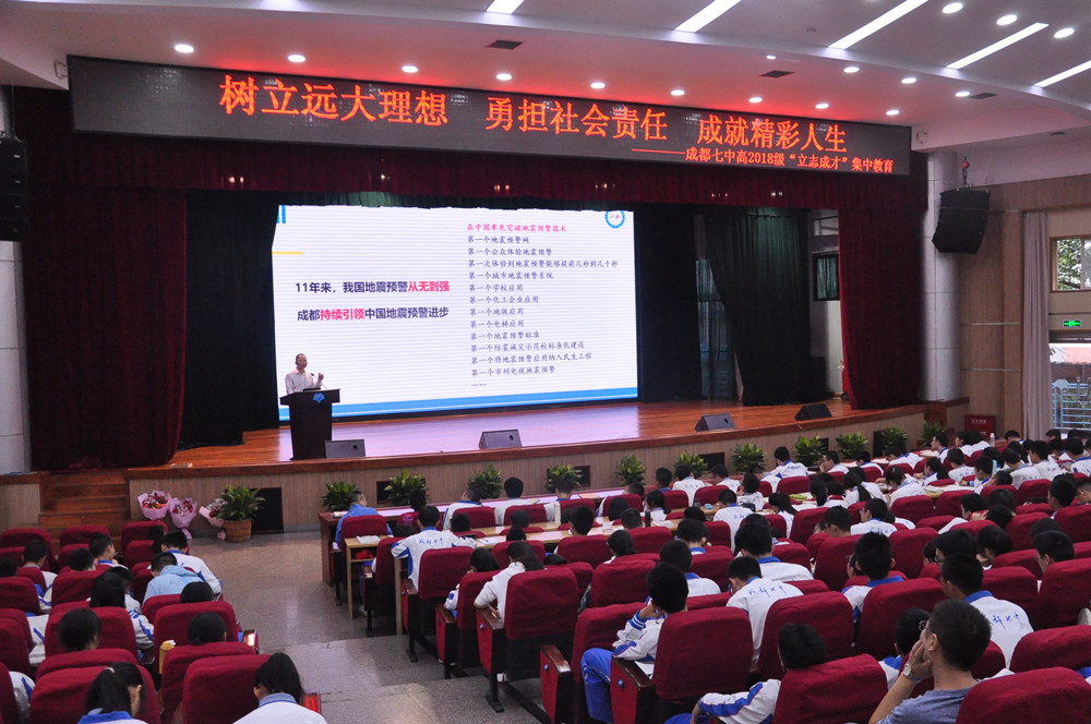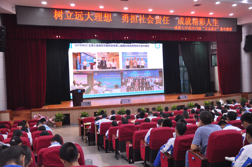 9月18日,成都七中(林蔭校區(qū))組織進行《樹立遠大理想 勇?lián)鐣?zé)任 成就精彩人生》“立志成才”集中教育,王暾博士應(yīng)易國棟校長邀請,做題為《從地震預(yù)警領(lǐng)域的十年創(chuàng)新創(chuàng)業(yè)談若干感受》的主題演講,與成都七中高中二年級師生進行交流。