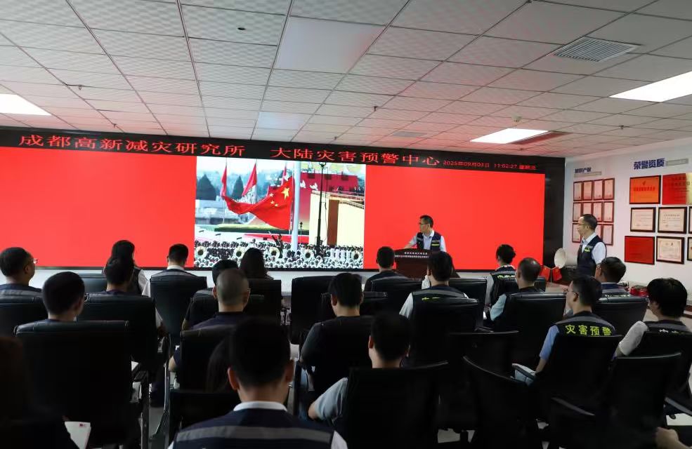 2025年9月3日上午9時(shí),成都高新減災(zāi)研究所全體員工齊聚會(huì)議廳集體觀看紀(jì)念中國(guó)人民抗日戰(zhàn)爭(zhēng)暨世界反法西斯戰(zhàn)爭(zhēng)勝利80周年閱兵儀式,共同回顧歷史、致敬英烈,弘揚(yáng)愛國(guó)主義精神,凝聚奮進(jìn)力量,共同見證國(guó)家日益強(qiáng)盛的國(guó)防實(shí)力與綜合國(guó)力