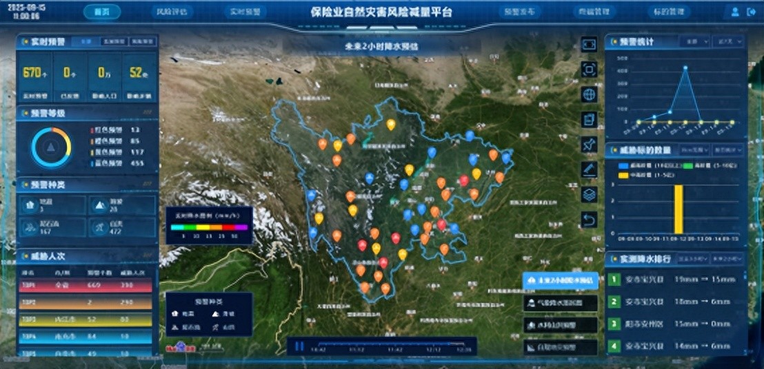 2025年2月,中華財(cái)險(xiǎn)四川分公司與減災(zāi)所達(dá)成合作,共同推進(jìn)多災(zāi)種預(yù)警服務(wù)風(fēng)險(xiǎn)減量服務(wù),合作建設(shè)了面向保險(xiǎn)行業(yè)的風(fēng)險(xiǎn)減量通用技術(shù)平臺(tái)(見(jiàn)圖2)。該平臺(tái)在保前階段依托風(fēng)險(xiǎn)普查數(shù)據(jù),實(shí)現(xiàn)對(duì)自然災(zāi)害風(fēng)險(xiǎn)的精準(zhǔn)全面評(píng)估,不僅能量化潛在風(fēng)險(xiǎn),還可對(duì)比分析有無(wú)預(yù)警服務(wù)帶來(lái)的風(fēng)險(xiǎn)差異;在保中階段,則通過(guò)多災(zāi)種預(yù)警服務(wù),有效提升企業(yè)災(zāi)害預(yù)警能力,為人員疏散、車(chē)輛轉(zhuǎn)移等應(yīng)急措施爭(zhēng)取寶貴時(shí)間,助力企業(yè)筑牢防災(zāi)減災(zāi)安全防線。